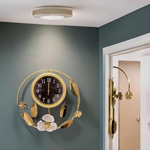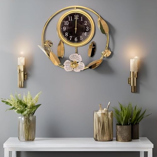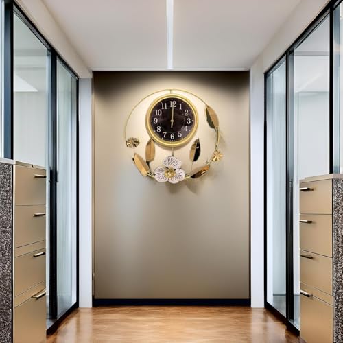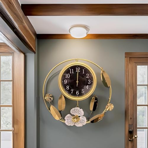NYTRYD - ساعة حائط كبيرة مزخرفة من NYTRYD، ساعة حائط معدنية صامتة لا تصدر صوت تكتكة بتصميم فني على شكل أوراق زهور للمطبخ وغرفة المعيشة وغرفة النوم والحمام وغرفة النوم والمكتب وديكور المنزل (موديل NY-23)