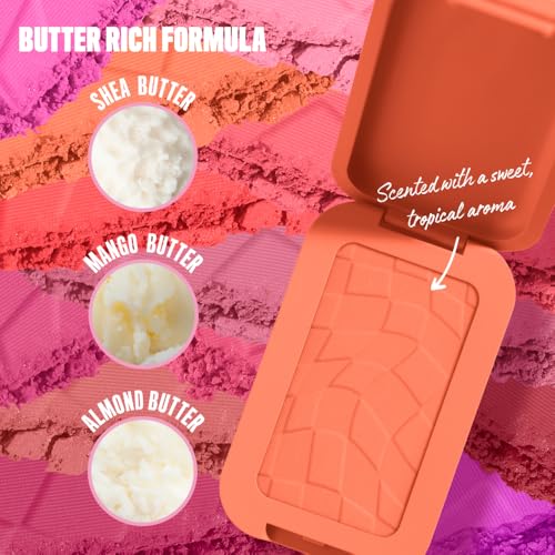 - تركيبة نباتية لم يتم الإساءة للحيوانات أثناء تصنيعها، غنية بالمانجو واللوز وزبدة الشيا لاستخدام سلسل كالزبدة، تذوب بودرة الخدود هذا في البشرة، مما يرفع ويضيء خديكِ.