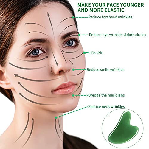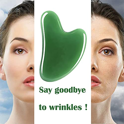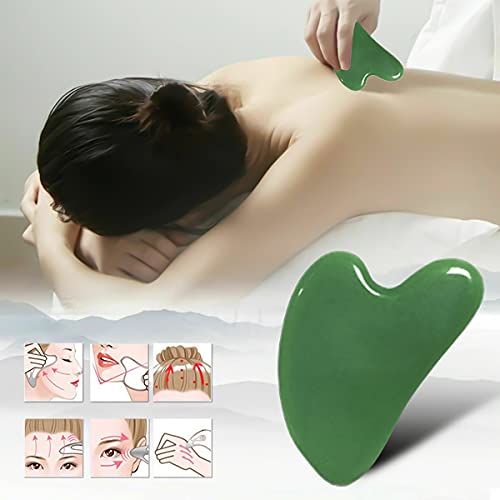 NYYHGS - أداة تدليك جوا شا للوجه، لوح جوا شا من حجر اليشم الطبيعي للعلاج بالوخز بالإبر في السبا، أداة تقشير جوا شا (لون أخضر)
