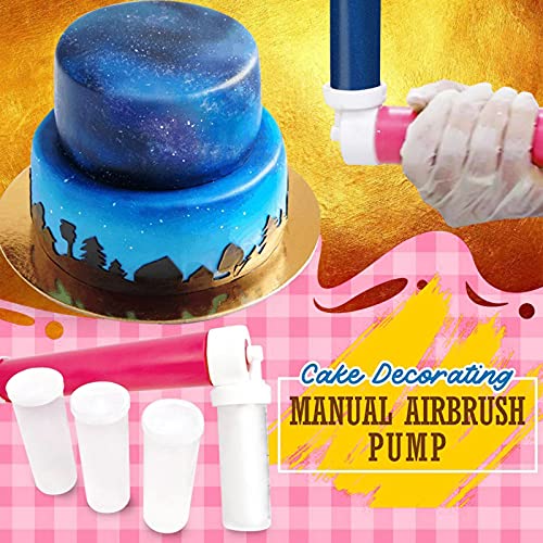 NZQ - فرشاة ببخاخ يدوي للكيك، اداوت الخبز بنفسك مع 4 انابيب بخاخات لتزيين الكيك والكوكيز والكب كيك والحلويات، مستلزمات المطبخ، من ان زي كيو، متعدد الألوان