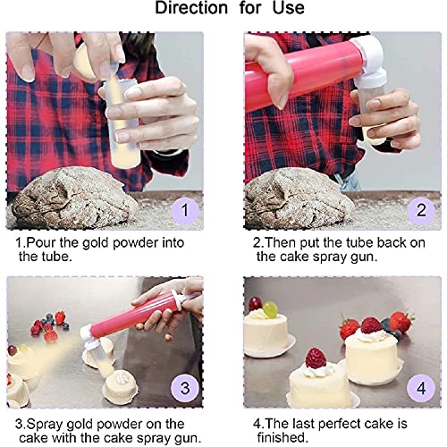- . متعدد الأغراض: يسمح لك مسدس الرش اليدوي بوضع الطلاء واللمعان بسرعة وسهولة على الكعك والكب كيك والبسكويت والشوكولاتة والفوندان والمعجنات ومعجنات السكر وغيرها من الحلويات، وهو رائع للمبتدئين في تزيين الكعك والمحترفين المتمرسين.