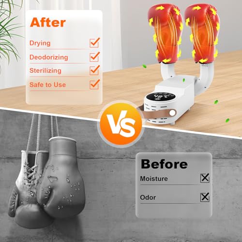 - وظيفة إزالة الروائح الكريهة: يزيل مجفف الأحذية الرطوبة والعرق والروائح بكفاءة ويحافظ على حذائك جافًا ونظيفًا ومنتعشًا. استمتع بتجربة ارتداء أفضل وأكثر صحة.