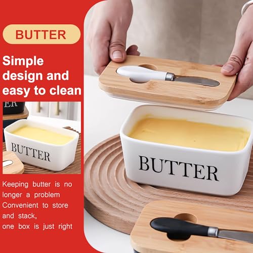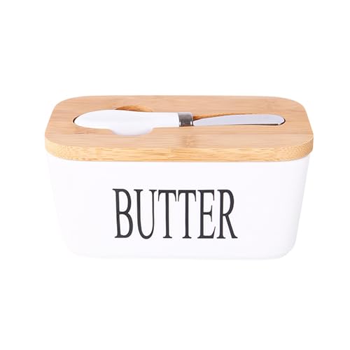 NZUSHUH - طبق زبدة كبير من السيراميك مع غطاء وسكينة زبدة متعدد الأغراض من الفولاذ المقاوم للصدأ بمقبض من السيليكون، مناسب للوضع على ترابيزة المطبخ من NZUSHUH
