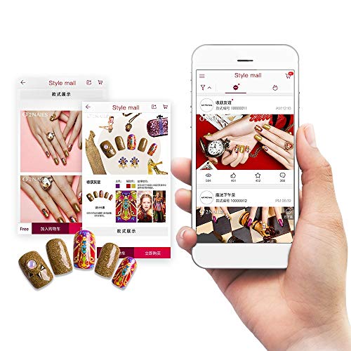 - محتويات العبوة: ما يصل إلى 1000 تصميم لفن الأظافر في معرض التطبيق لاختيارك، أو التقطي صورك المفضلة من ألبوم موبايلك السمارت. تصميمات مختلفة من مصمم محترف. -