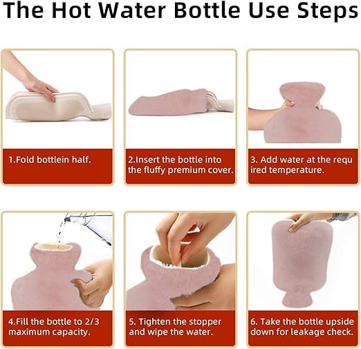 - قربة ماء ساخن بتصميم فم واسع، تمنعك من التعرض للحروق عند صب الماء. مريحة للغاية وتمكنك من صب الماء بأمان بسرعة داخل قربة الماء الساخن دون أن تفيض. يرجى صب ثلثي الماء الساخن بدرجة حرارة 80 درجة. ملاحظة: لا تستخدم الميكروويف لتدفئتها.