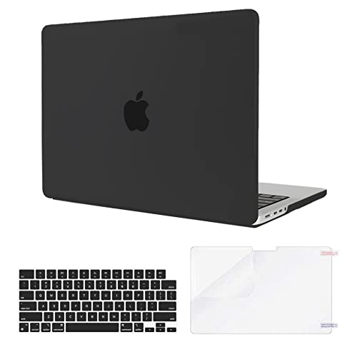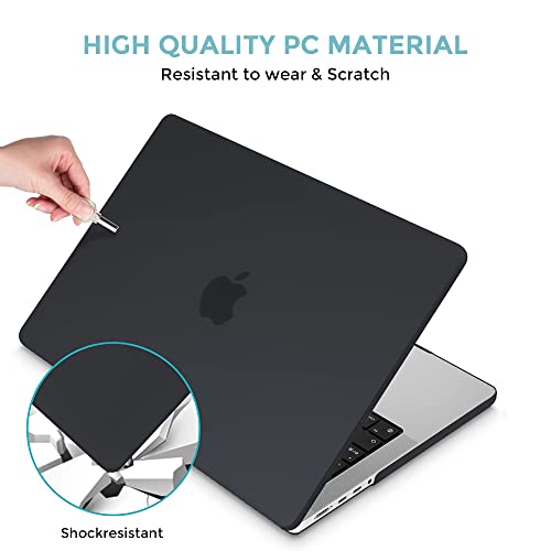 O Ozone - او اوزون حافظة متوافقة مع ماك بوك برو 14 انش A2442 2021 ماك بوك برو 14.2 مع شريحة M1 برو / M1 ماكس وتاتش اي دي، غطاء كيبورد انجليزي امريكي وواقي شاشة (اسود)، بلاستيك، لأجهزة اللاب توب
