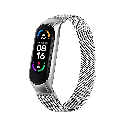 O Ozone - سوار ميلانو لساعة شاومي مي باند 6/ 5 من او اوزون، بديل بمسامات للتهوية اليد السمارت للنساء والرجال, ستانلس ستيل، فضي