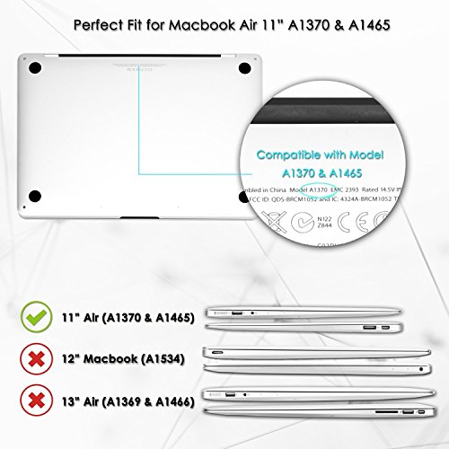 - [تصميم غلاف نحيف للغاية] يساعد التصميم النحيف على حمل المنتج بسهولة لفترة أطول دون أي ضغط. يساعد على صنع تصميم أنيق وأنيق ليناسب تماما ماك بوك آير الخاص بك. جراب A1370 وجراب A1465.