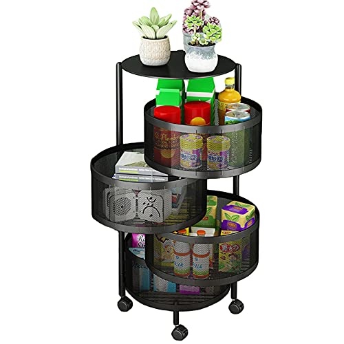 O9 O-NINE - منظم ارفف دوار للخضراوات من او-ناين، سلة فواكه دائرية متعددة الادوار للمطبخ والمنزل - 4 ادوار - اسود