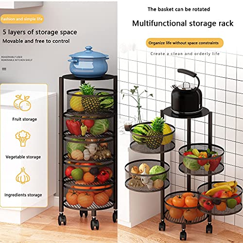 - سلة خضروات معدن سميكة للمطبخ، سلة تخزين دائرية متعددة الأدوار وقابلة للدوران، منظم مطبخ متعدد الاستخدامات بأرفف تخزين