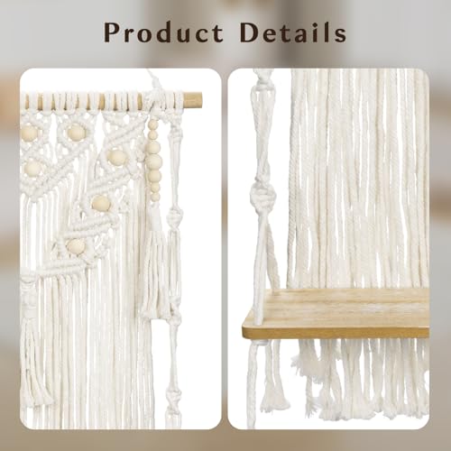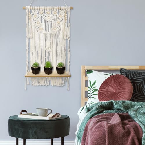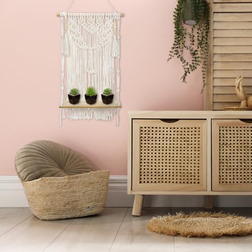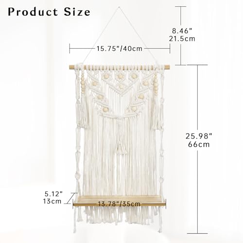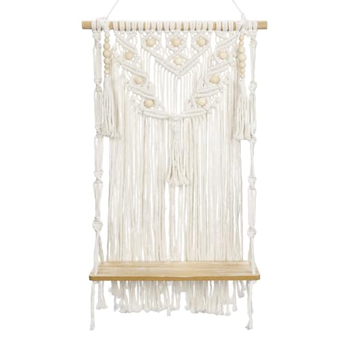 Oairse - اويرس رف حائط مكرامي مزخرف بنمط بوهيمي، رف خشبي للتعليق على الحائط مصنوع يدويا من حبل قطني لديكور الحائط لغرفة النوم وغرفة الاطفال وغرفة المعيشة