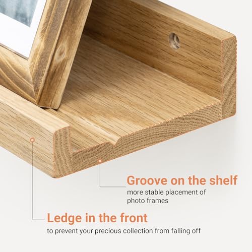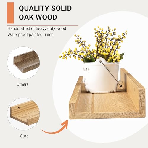 Vivelove - رف معلق يثبت على الحائط من خشب البلوط، أرفف سوداء لتزيين الحائط، رف عصري للصور مع حافة للتخزين وغرفة النوم وغرفة المعيشة والحمام وعرض الأشياء وتنظيمها في الحضانة