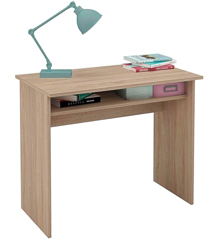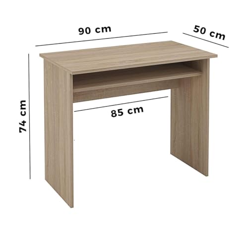 dmobel - مكتب دراسي خشبي بلون البلوط، مع رف تخزين، 90 × 50 × 74 سم، مكتب منزلي للدراسة والعمل