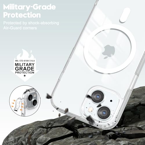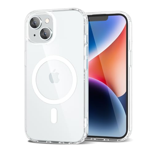 oakxco - جراب مغناطيسي شفاف لموبايل آيفون 14 بلس متوافق مع شحن ماج سيف مضاد للصدمات من السيليكون الناعم والبولي كربونات الصلب شفاف للغاية ومضاد للاصفرار من اوكسكو