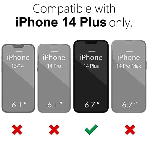 - متوافق فقط مع آيفون 14 بلس 6.7 بوصة (إصدار 2022). محتويات العبوة: 1 × جراب مغناطيسي لموبايل آيفون 14 بلس بدون شاشة حماية.