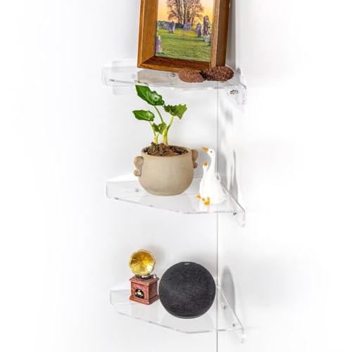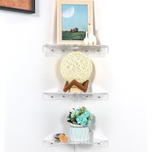 OAPRIRE - اوريير مجموعة ارفف حائط عائمة مقاس 9 انش من 4 قطع - حل مشاكل مساحة العداد - رف صغير الاكريليك للحمام وغرفة النوم المعيشة والمكتب مع مشابك كيبل شفاف