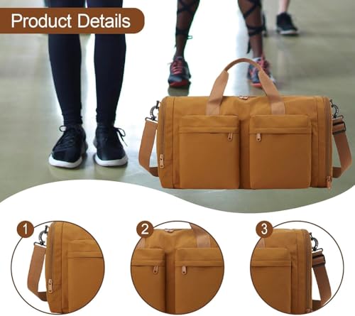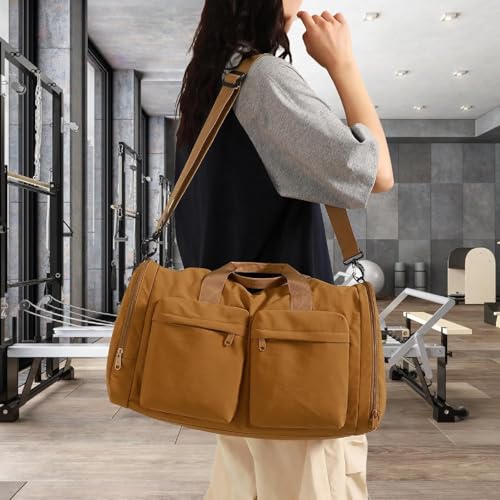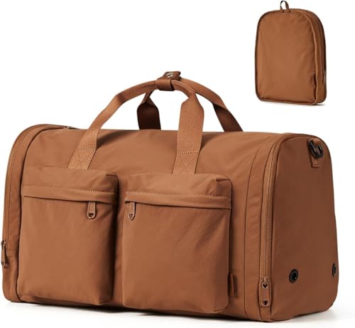 Oasisgalore - شنطة جيم وسفر دافل - شنط رياضية وللسفر قابلة للطي مع قسم خاص للأحذية للرجال والنساء من اوزيس جالور، بني، مقاس 49 × 23 × 28 سم، رياضية