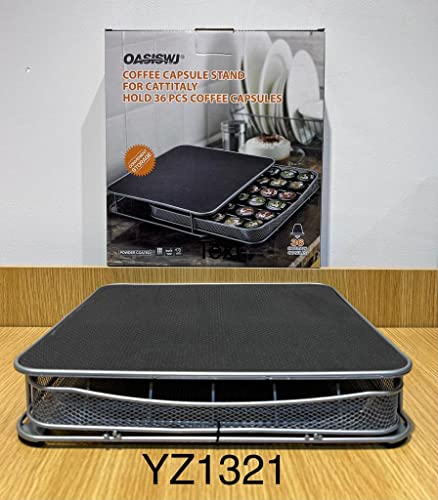 OASISWJ - حامل لكبسولات القهوة من اويزيس دابليو جيه، حامل برف شبكي يحمل حتى 36 قطعة، مناسب لكبسولات دولتشي جوستو، نسبريسو، اسبريسو، كيه كاب (36 فتحة)، من اويسيز دبليو جيه، فضي