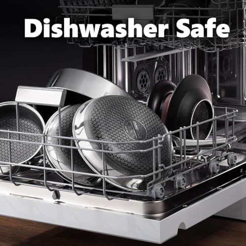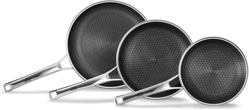 OATOFP - مجموعة مقالي غير لاصقة من اواتوفب، مجموعة مقالي هجينة غير لاصقة (8+10+12 انش)، صواني للطبخ، مجموعة مطبخ ستانلس ستيل خالية من حمض بيرفلورو الاوكتانويك امنة للاستخدام في غسالة الصحون والفرن