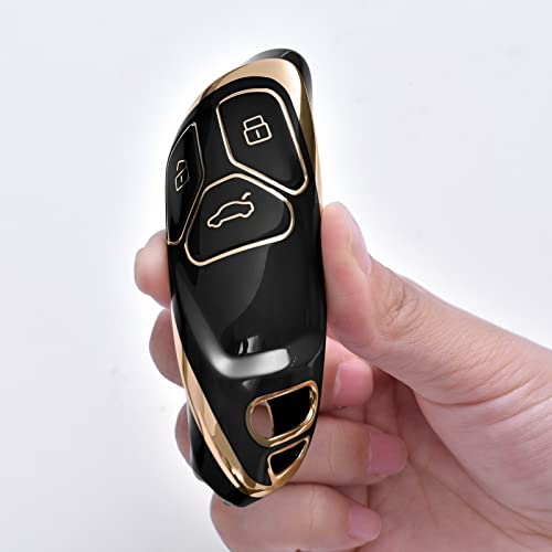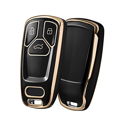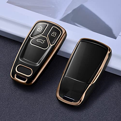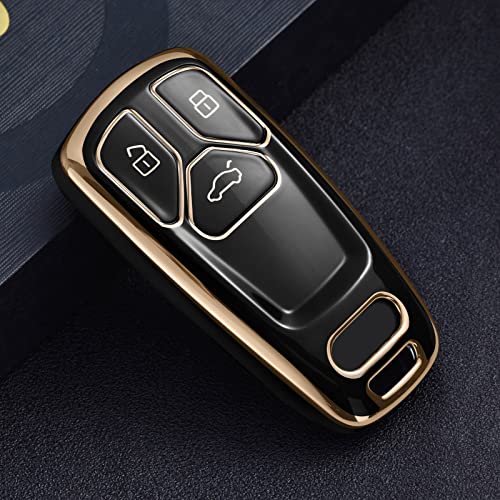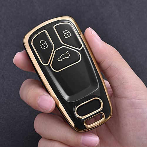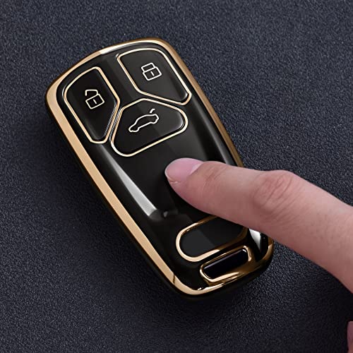 OATSBASF - غطاء مفتاح سيارة متوافق مع اوودي A4L A6L A8 Q5 Q7 TTS TT بـ 3 أزرار من البولي يوريثين الحراري أسود بحواف ذهبية
