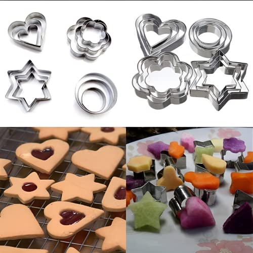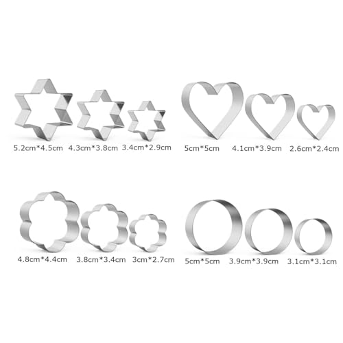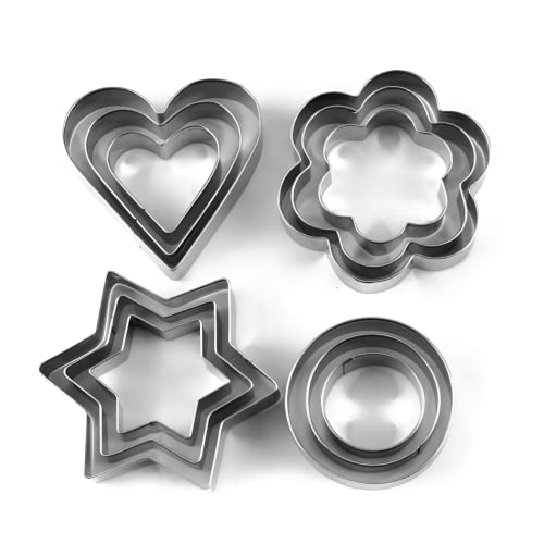 Oblivion - اوبليفيون قطاعة بسكويت | 12 قطعة | ستانلس ستيل | قطاعة بسكويت كيك خضروات | قوالب للخبز | قلوب وزهور ونجوم ودائرية، قطاعة فوندان | فضي | 4 اشكال و3 احجام