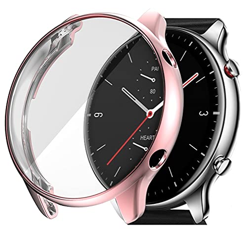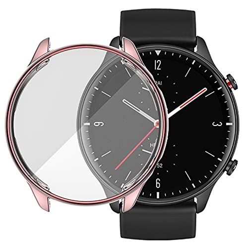 OBOE - جراب مع شاشة حماية مضاد للصدمات مصنوع من البولي يوريثين المقاوم للحرارة وممتص للصدمات بتصيمم رفيع لساعة امازفيت GTR2/GTR 2e من اوبو، لون وردي
