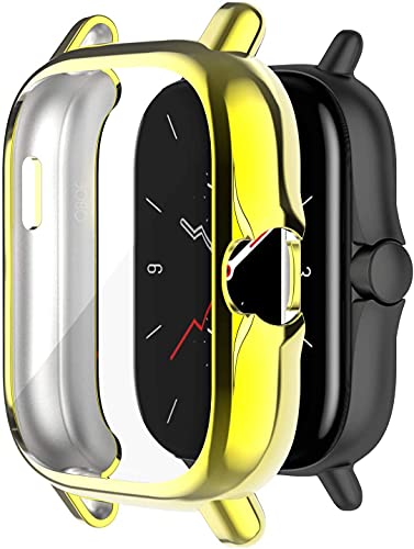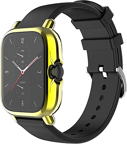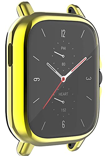 OBOE - هيكل مع شاشة حماية مضادة للصدمات مصنوع من بولي اليوريثين المقاوم للحرارة الناعم موديل OBAMZGTS2G، جراب حماية رفيع لساعة امازفيت GTS2/GTS 2e من اوبوي، ذهبي