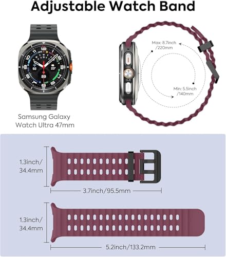 OBOE - سوار سيليكون من اوبوي متوافق مع ساعة سامسونج جالاكسي 7 الترا 47 ملم رياضي بدون فجوات احمر نبيذي [الساعة غير متضمنة للجنسين