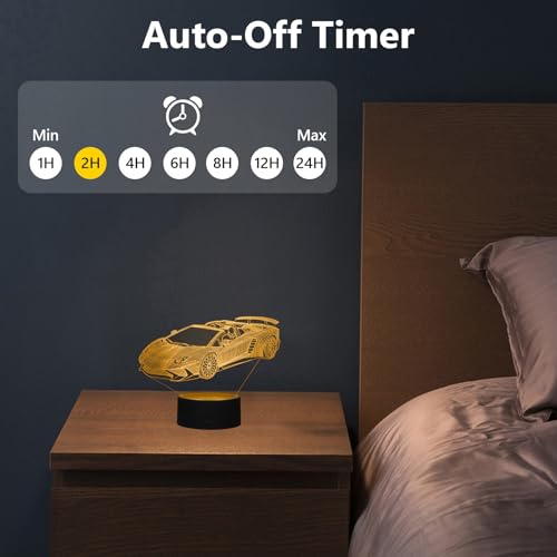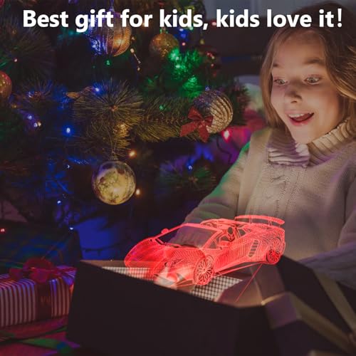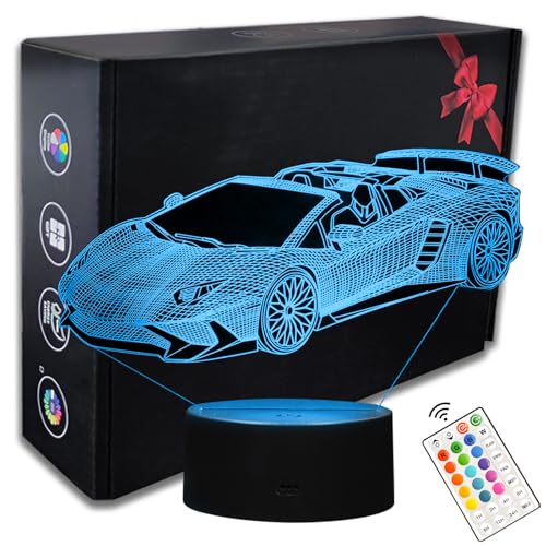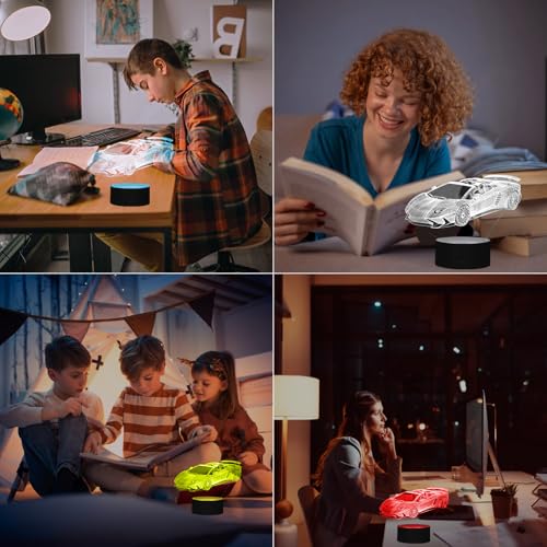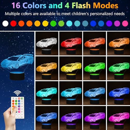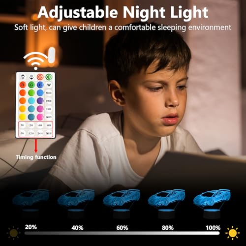 oboist - أباجورة ليلية بتصميم سيارة سباق، إضاءة ليد ثلاثية الأبعاد للأولاد – لغرفة النوم بطابع سيارات السباق، مصباح بتأثير وهمي بصري بجهاز تحكم عن بُعد، مثالي لديكور غرفة الأطفال، وهدية رائعة لعشاق السيارات