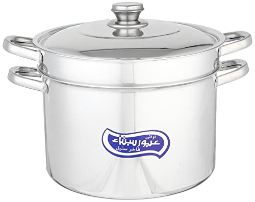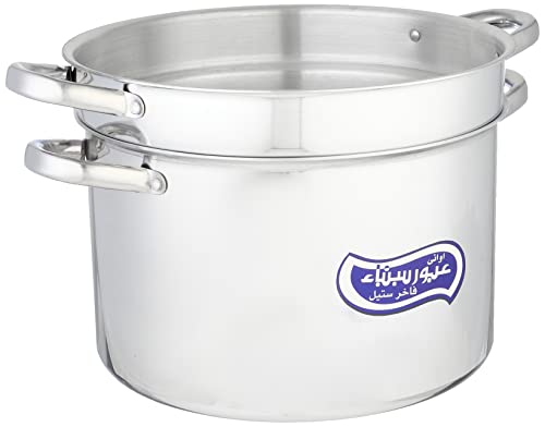 Obour Sina Cookware - حلة طهي مكرونة من الألومنيوم بغطاء مقاس 28 سم من عبور سينا، لون فضي