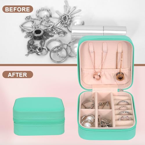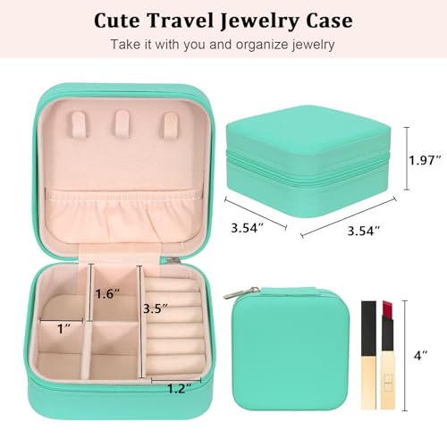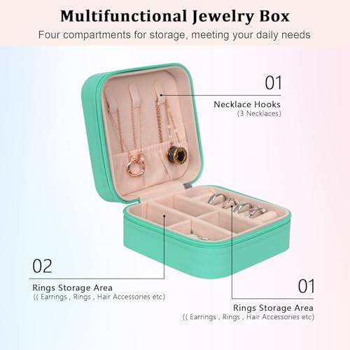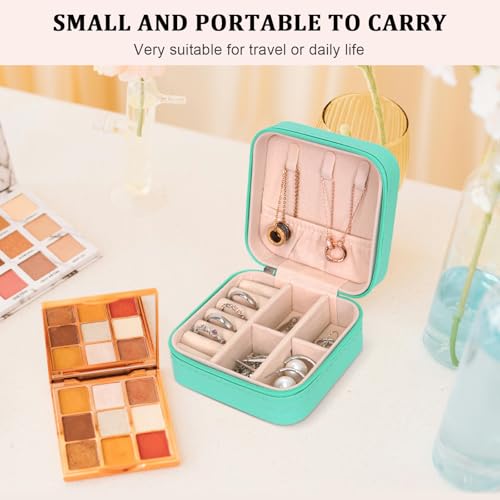 - صندوق مجوهرات صغير للسفر مثالي للفتيات لتخزين الحلقان والخواتم والسلاسل القصيرة والسلاسل العادية وأحمر الشفاه ودبابيس الشعر وغيرها من إكسسوارات السفر، يصلح جدًا لحمل الأغراض في خلال رحلة قصيرة أو للاستخدام اليومي أو على الكومودينو