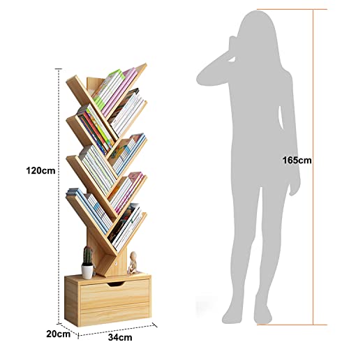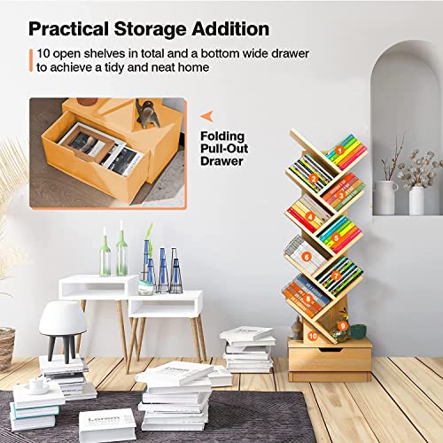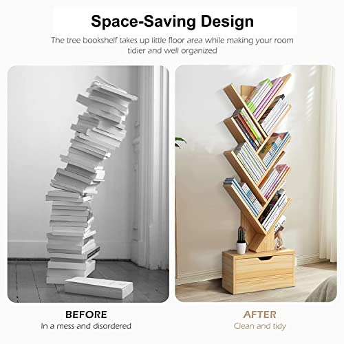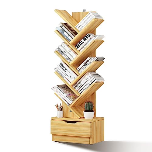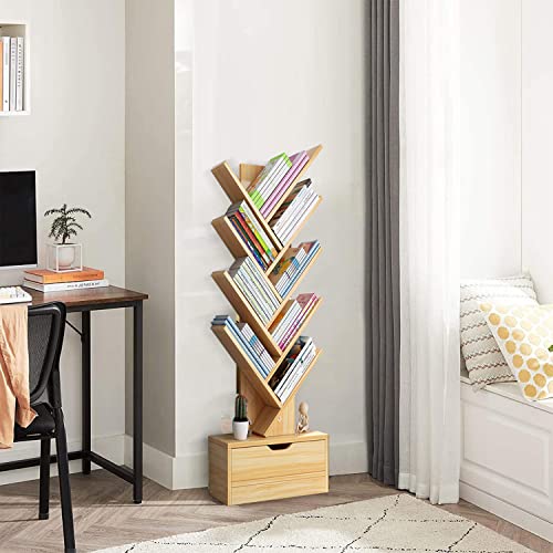 Occuwzz - اوكوز® رف كتب بتصميم شجرة مكون من 9 طبقات 8 ارفف مع درج تخزين عصري قائم بذاته منظمة للمنزل والمكتب وغرفة المعيشة النوم كستنائي خشب خيزران