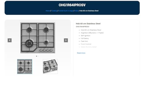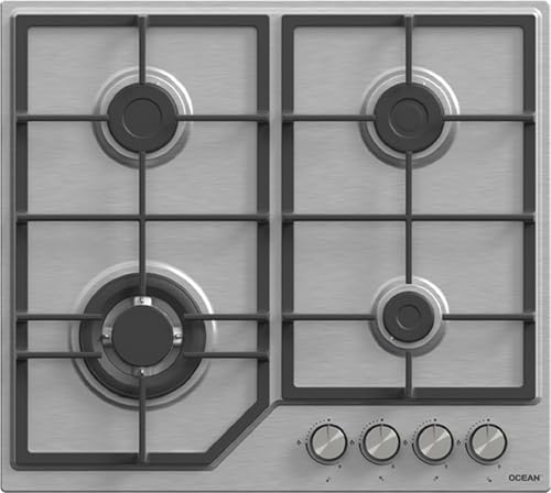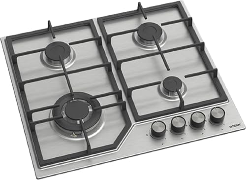 Ocean - اوشين موقد غاز مدمج 60 سم، ستانلس ستيل، 4 شعلات (ساباف ايطالي)، امان كامل، دعم مقلاة من الحديد الزهر، اشعال ذاتي، تحكم امامي، صنع في تركيا - OHG1R64IPROSV