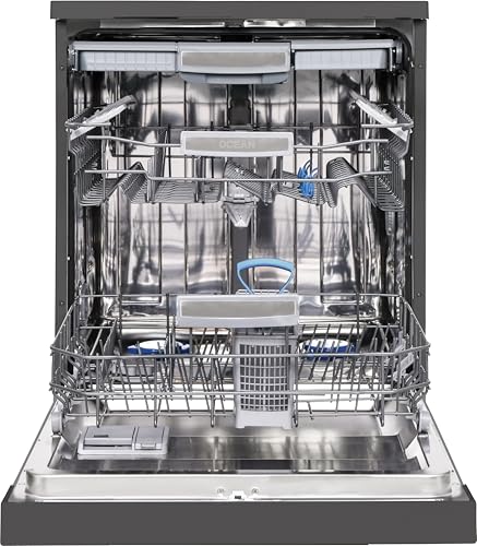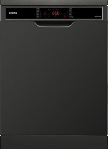 Ocean - غسالة أطباق مع 15 إعداد و8 برامج بمحرك تيار مستمر عديم المسفرات و4 رفوف سفلية مطوية بغسيل ثلاثي وبالبخار ونظام رش مباشر وتجفيف تربو مع شاشة ال اي دي من اوشن، لون دارك اينوكس، موديل ODOI815VXBN، تركيا