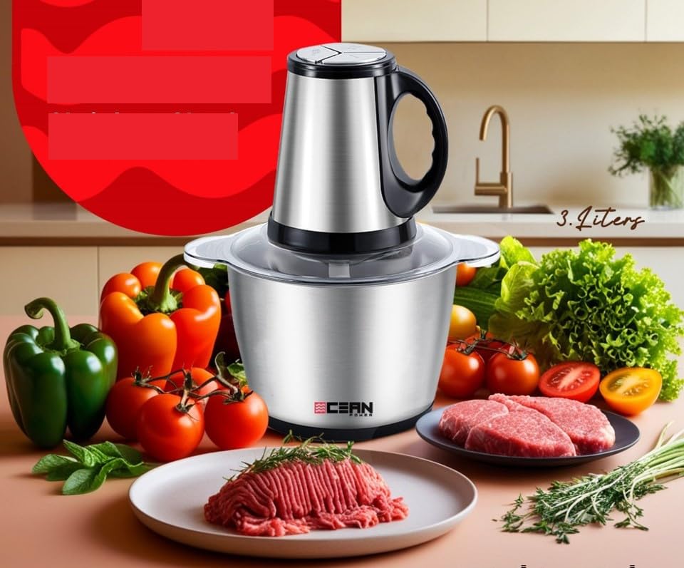 - سعة كبيرة: وعاء من الفولاذ المقاوم للصدأ بسعة 3 لتر، مثالي للاستخدام العائلي وتحضير كميات كبيرة