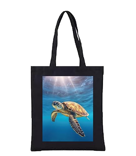 Generic - مجموعة حقائب كبيرة توت قماشية بنمط المحيط، اسود، مطبوعات الحياة البحرية