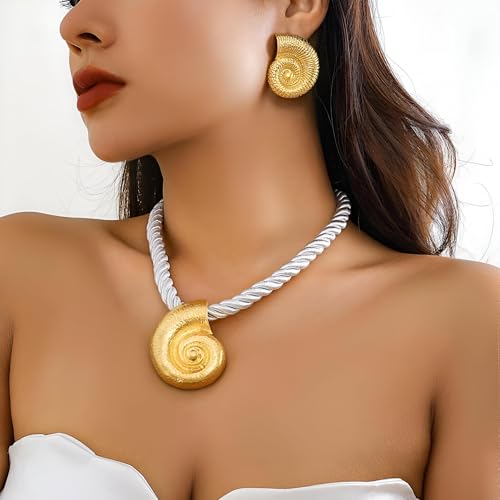 Generic - مجموعة قلادات بطابع المحيط - قلادة ذهبية على شكل نجم البحر واقراط تكميلية للنساء، اكسسوار مثالي للعطلات الشاطئية والمناسبات الساحلية وازياء الصيف