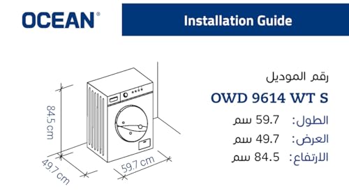 Ocean - غسالة تحميل أمامي سعة 9 كيلوجرام مع مجفف 6 كيلوجرام من اوشن، 1400 لفة، رقمية، بلد المنشأ تركيا، فضي غامق - OWD9614WTS