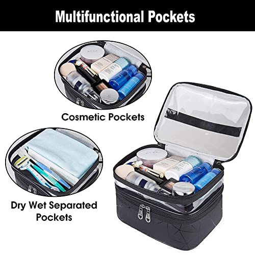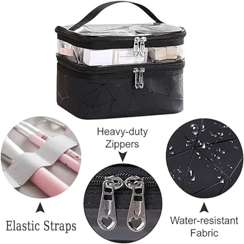 OCEANEVO - شنطة مكياج من اوشينيفو مستحضرات تجميل للنساء لتخزين ادوات النظافة ومستحضرات التجميل والفرش مع اسفنجة - 21 × 17 15 سم اسود اكسسوارات السفر بلاستيك بي في سي