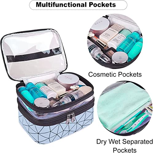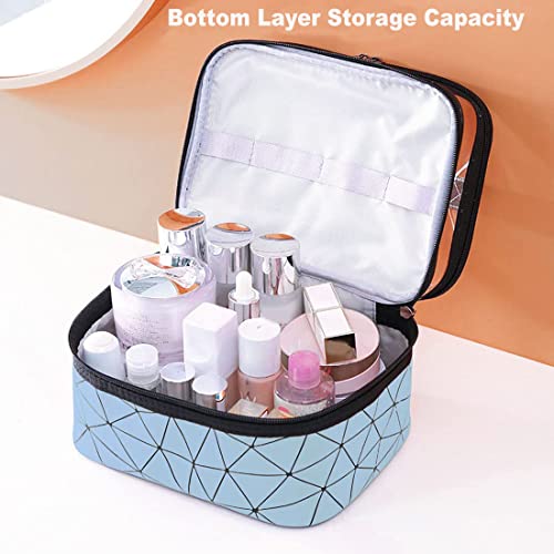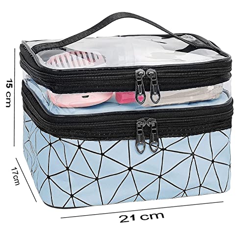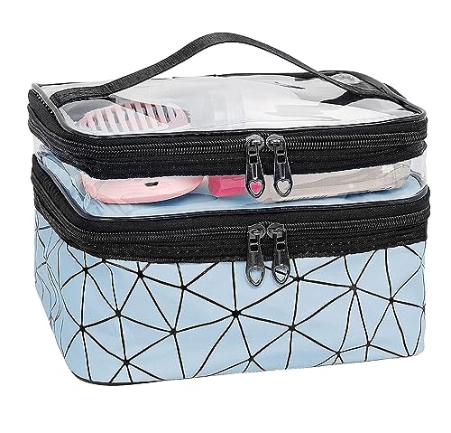 OCEANEVO - شنطة مكياج من اوشينيفو مستحضرات تجميل للنساء لتخزين ادوات النظافة ومستحضرات التجميل والفرش مع اسفنجة - 21 × 17 15 سم ازرق سماوي اكسسوارات السفر بلاستيك بي في سي