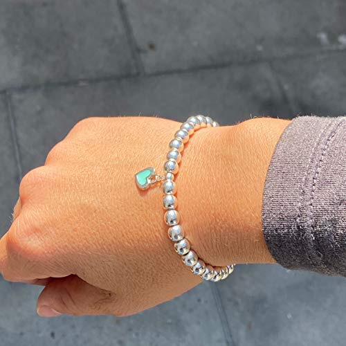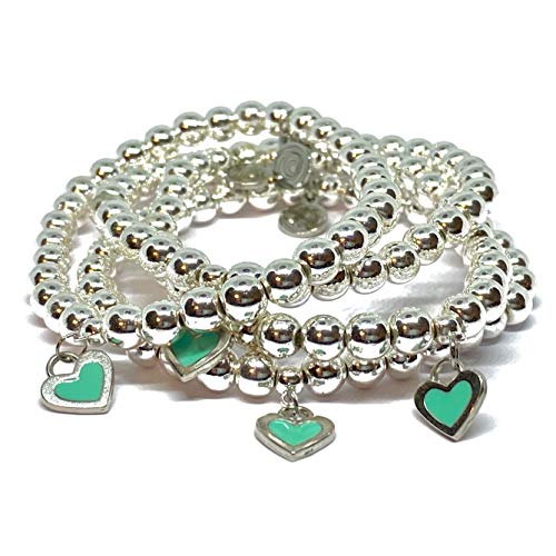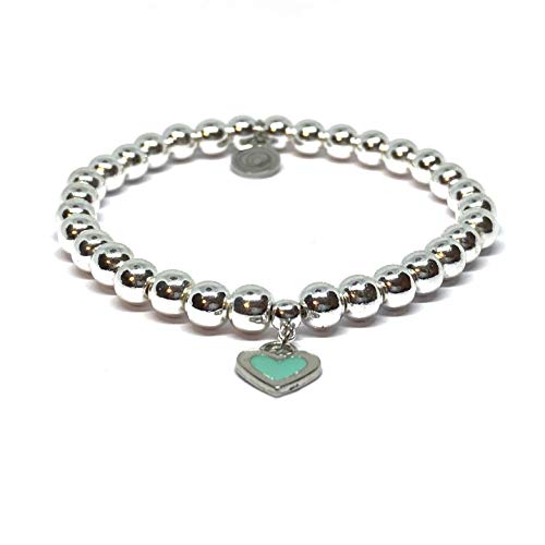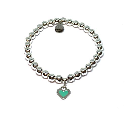 Ochrana - سوار مطاطي من حجر الدم الفضي مع دلاية بتصميم قلب من الستيل بلون ازرق تركواز من اوكرانا، 17.5 سم/ 6 ملم, ستانلس ستيل, الهيماتايت