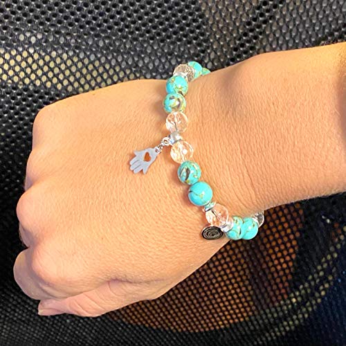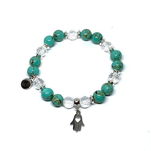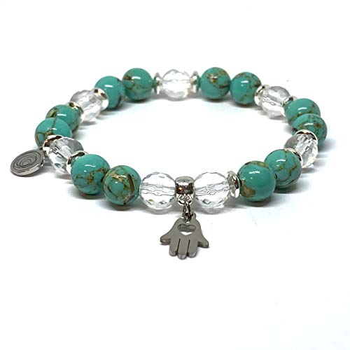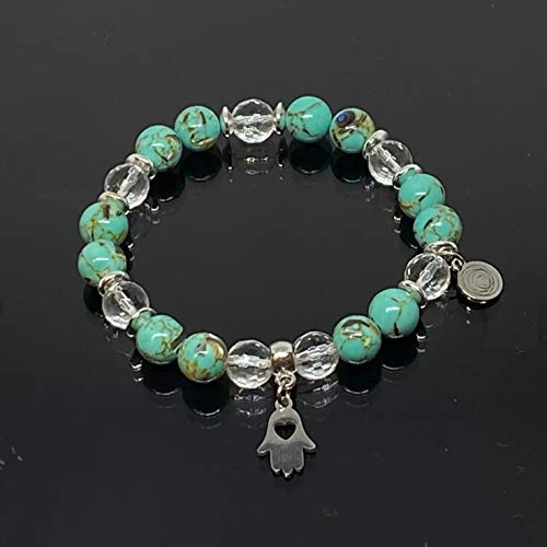 Ochrana - سوار مرن بحجر الهولايت والتركواز والكوارتز الكريستالي وحجر الدم وحلية خمسة وخميسة 8 ملم من اوكرانا، 18 سم, ستانلس ستيل, الهيماتايت
