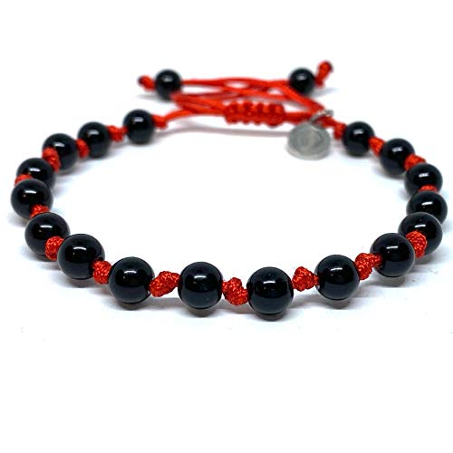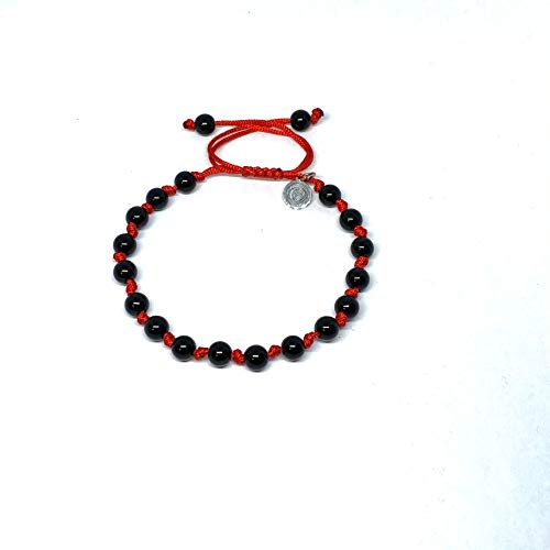Ochrana - سوار مكرمية احمر قابل للتعديل مع خرز عقيق اسود 6 ملم من اوكرانا, ستانلس ستيل, العقيق