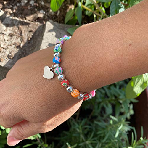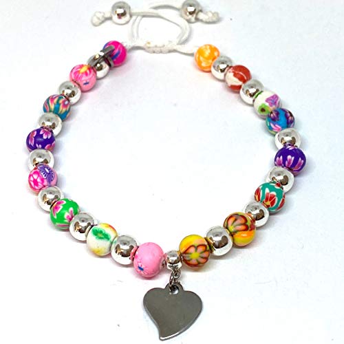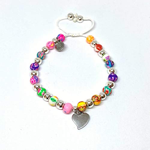 Ochrana - سوار قابل للتعديل بخرز حجر الدم بدلاية على شكل قلب 6 ملم من اوكرانا، بلون فضي, ستانلس ستيل, الهيماتايت