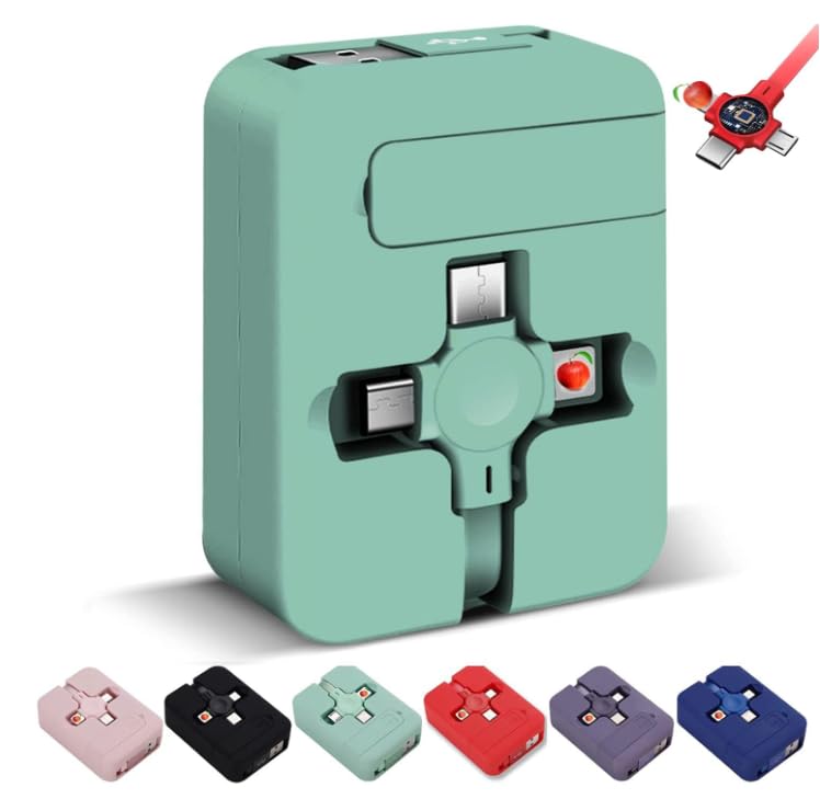 Ocilenya - حامل هاتف وكابل بيانات USB 3 في 1 بريزيرفن من اوسيلينيا، شاحن هاتف قابل للسحب، كابل شحن سريع متعدد الشواحن لجميع الأنواع (أخضر)
