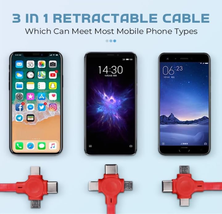- 【حامل هاتف وكابل بيانات 3 في 1】استمتع براحة خيارات الشحن المتعددة مع كابل 3 في 1 الخاص بنا. مع ثلاثة منافذ شحن لجميع أجهزة الشحن الثلاثة، يمكنك التبديل بينها بسهولة حسب الحاجة.