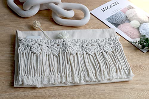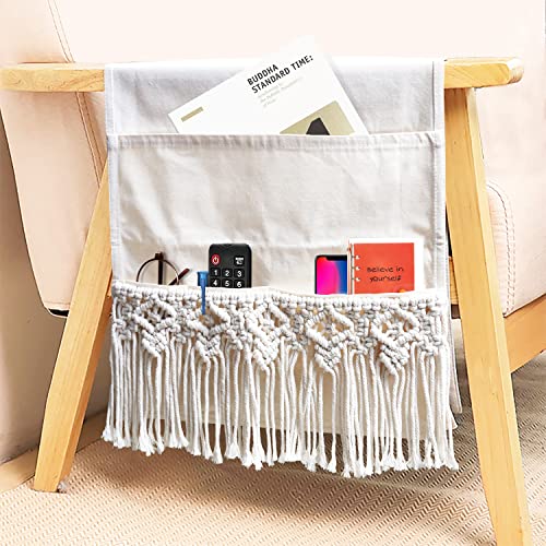 OCIOLI - اوشيولي منظم تخزين بجانب السرير للكرسي بذراعين حامل جهاز تحكم عن بعد سرير مع 5 جيوب وديكور مكرمية للسرير وغرف السكن الجامعي وسرير الاطفال واسرة المستشفيات عاجي .