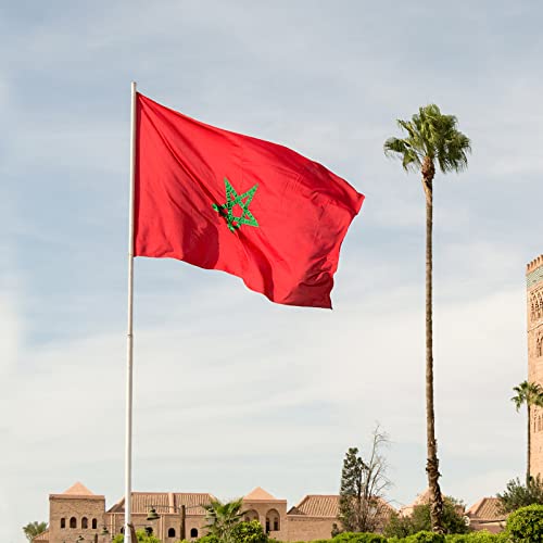 ocouly - علم دولة المغرب الوطني من البوليستر، راية كبيرة مقاومة للبهتان والأشعة فوق البنفسجية مع 2 عروة تثبيت نحاسية، أعلام المغرب للدعم الرياضي الوطني من اوكولي، مقاس 90 سم × 1.50 م