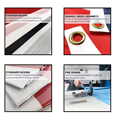 - [خياطة مزدوجة]: هذا العلم الوطني المغربي الكبير مصنوع بخياطة مزدوجة حول الحواف ومعززة بـ 2 عروة نحاسية. تصميم رائع من الناحية الجمالية ومتين. العلم مناسب للتعليق على سارية العلم القياسية أو الحامل. سيضمن لك الاستمتاع برفع علمك لفترةٍ أطول. (ملاحظة: العلم يأتي بدون عمود).