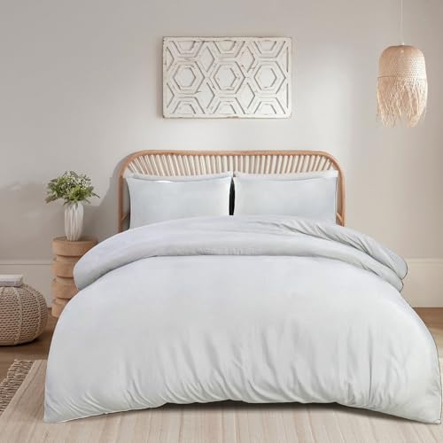 Ocra - طقم غطاء لحاف فاخر من القطن والبوليستر الابيض بتصميم عصري بسيط لغرفة النوم من اوكرا، (لون ابيض، مقاس كينج 260 × 240)